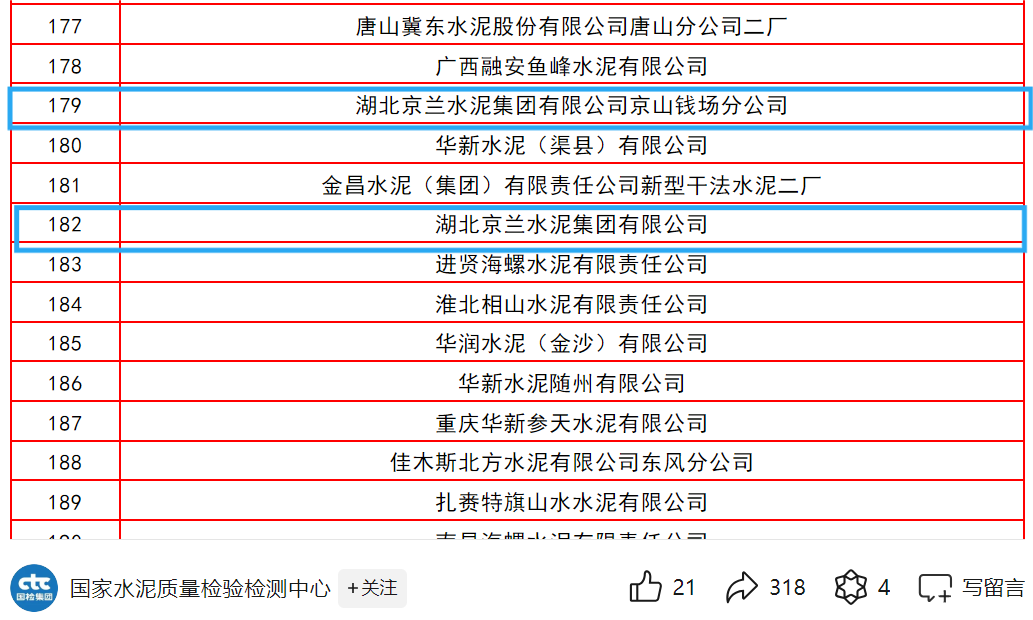8月2日,備受矚目的“天寶華瑞杯”全國第十九次水泥化學(xué)分析大對比獲獎名單正式揭曉,在這場全國性的水泥行業(yè)質(zhì)量競技中,京蘭5家水泥公司均榮列榜單。